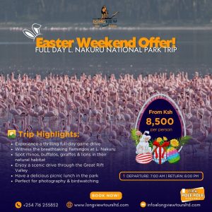 The price for this Lake Nakuru National Park Easter Safari starts from Ksh 8,500 per person. Group discounts are available for parties of four or more, making it an affordable and memorable experience for families and friends.